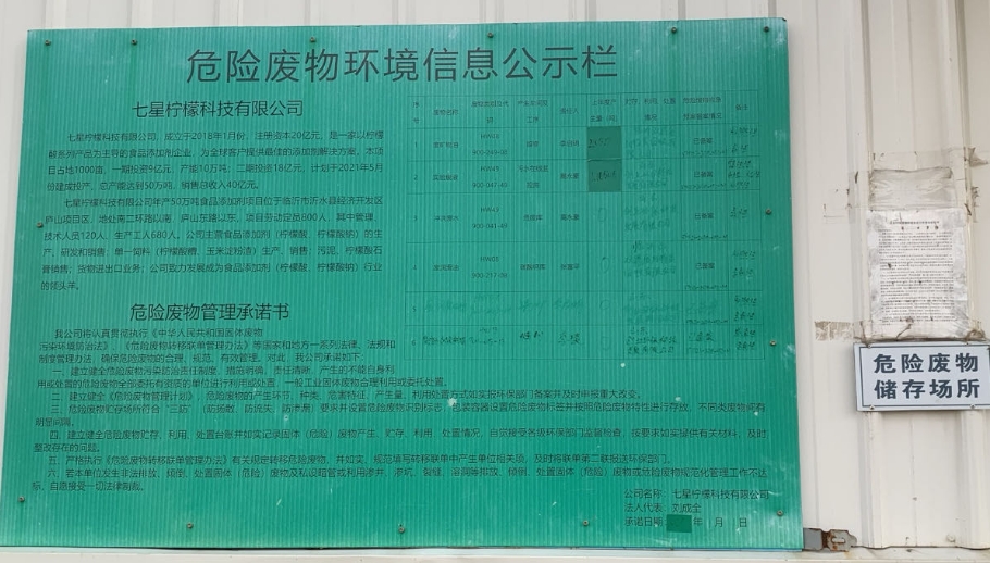 七星柠檬科技有限公司24年度危险废物污染环境防治信息公示